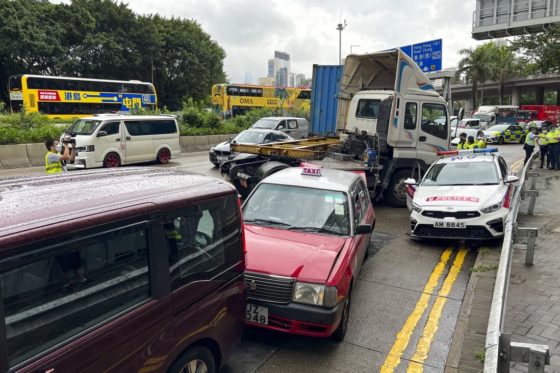 Out Of Control Truck Pins Police Car Against Barrier Crashes Into 2 Vehicles During Hong Kong Morning Rush Hour South China Morning Post